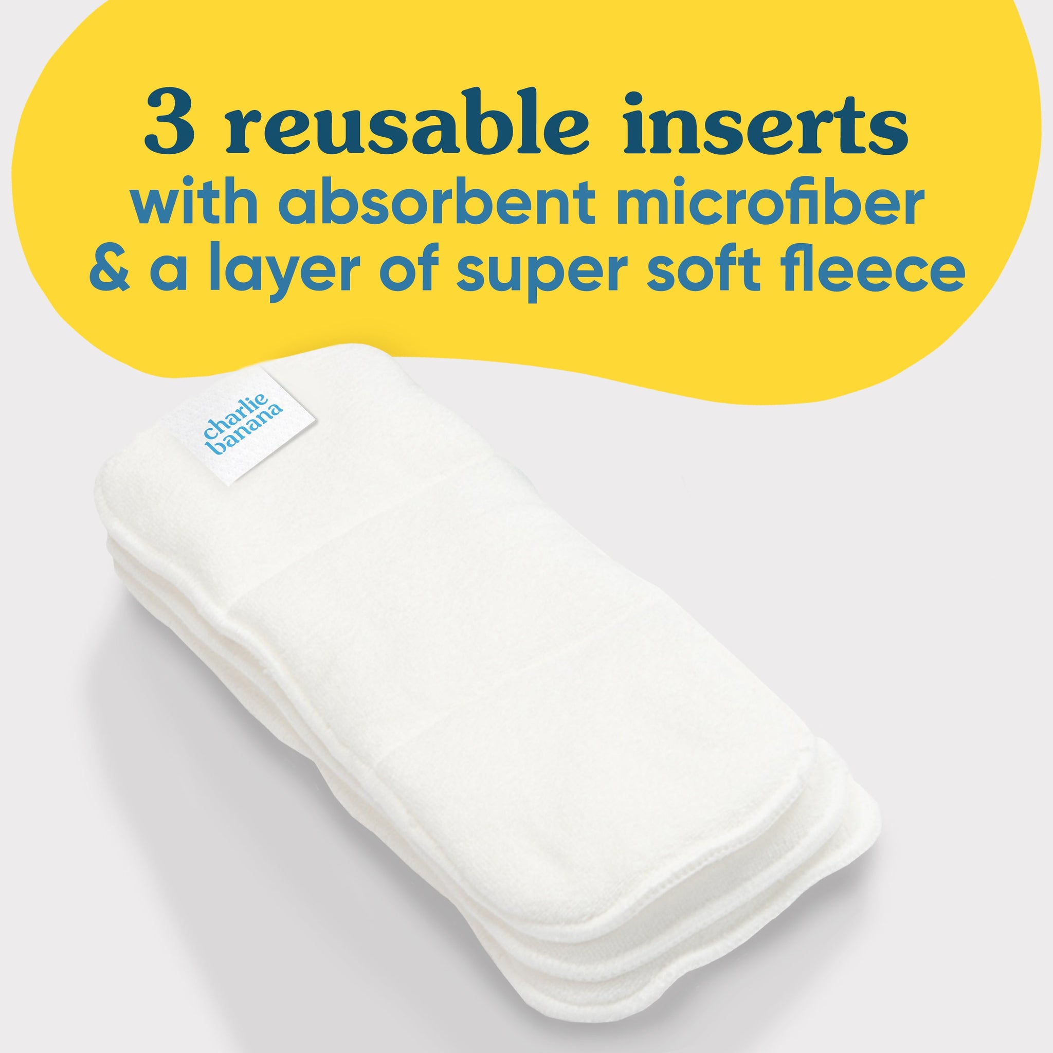 More products...In the box, you'll find three one-size reusable deluxe inserts to put in any Charlie Banana diaper. Double up with two inserts for extra absorbency, or pair with a booster insert for less bulkiness.