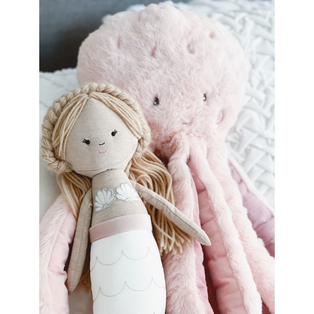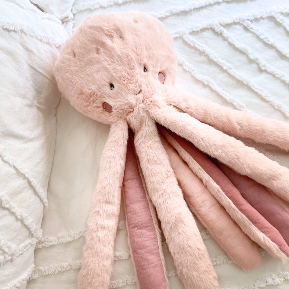Meet Pinky the Octopus! Made from a gorgeous pink plush with linen lined legs, she likes to play in the deep ocean with her brother Inky. Pinky will give your child hours of fun and imaginative play, and is always ready for a hug. Part of our "Under the Sea" collection, both Inky and Pinky are destined to delight children of all ages!