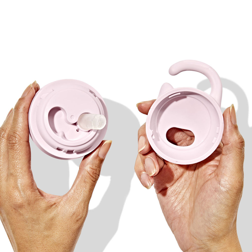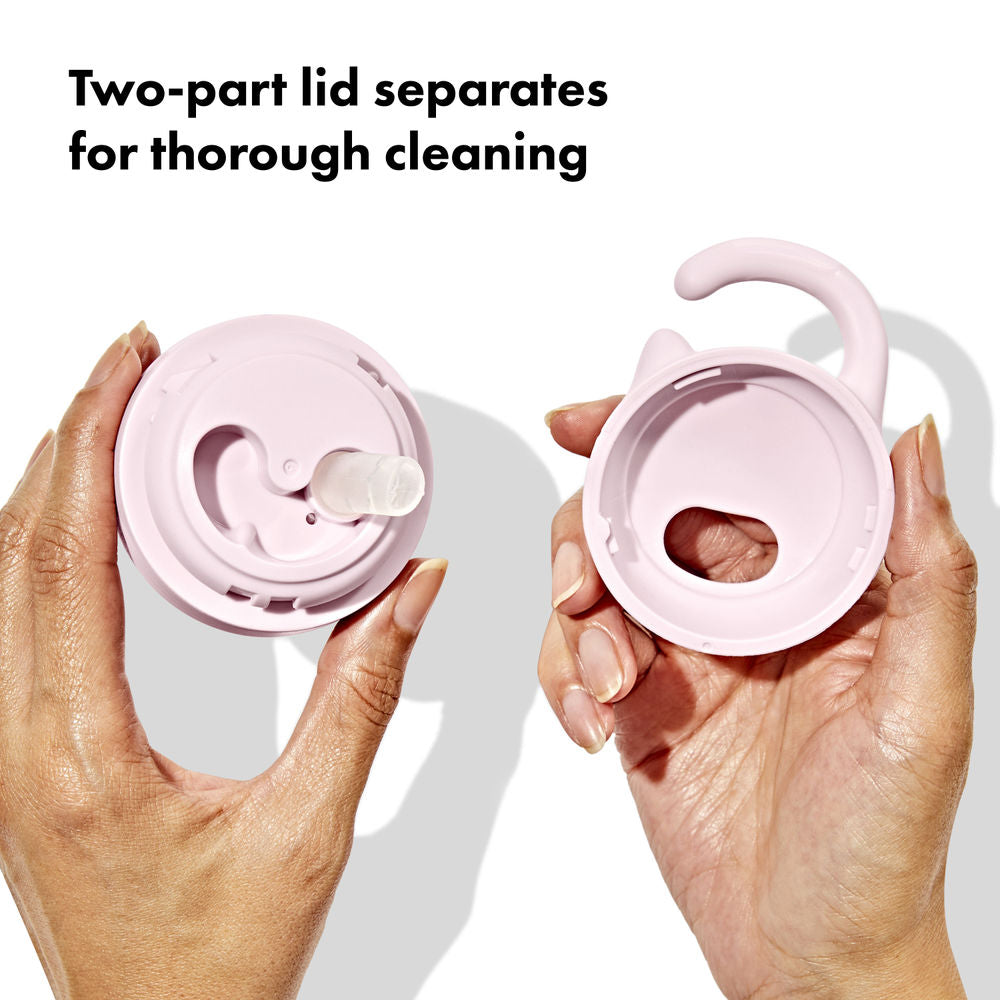• Two-part hinged cap removes easily for adults and separates for cleaning