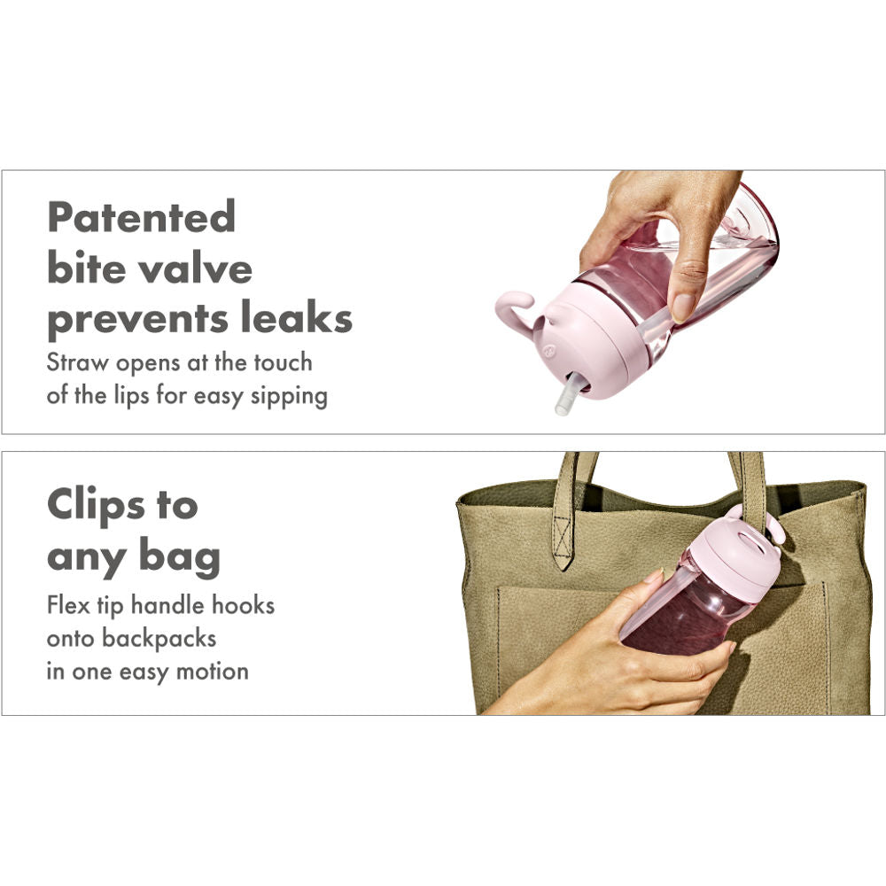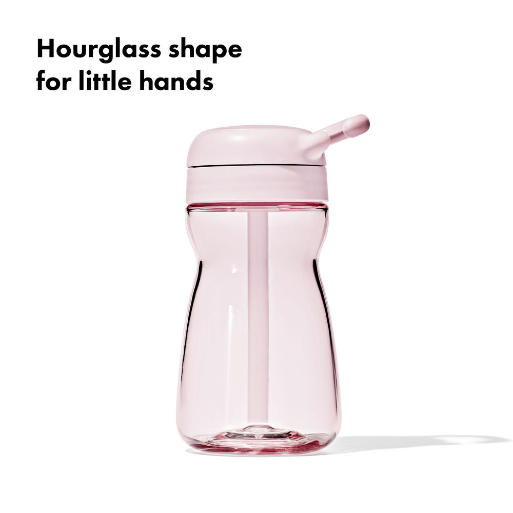 Keeping active tots hydrated is important and the OXO Tot Adventure Bottle is designed to do just that—and with less mess. With the OXO Tot Adventure Water Bottle, you can let kids sip without worrying about making a mess. This 12-oz water bottle features a patented, spill-proof straw that helps put an end to leaks, drips, and dribbles. The bite valve opens the moment your child's lips touch the straw, so it's easy for kids who want to do everything on their own. Tots can open the straw lid with a twist, while grown-ups will have no trouble separating the two-part hinged cap for a thorough cleaning. The bottle's hourglass shape fits just right in little hands, so kids can carry it anywhere. The flex-tip hook attaches securely to diaper bags, backpacks and more, so it's a snap to bring this bottle with you on all your adventures.